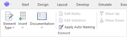 The 'Element' panel offers a range of facilities for working with the elements that are displayed in the Specification Manager view. There are facilities for adding new elements and viewing and editing element properties.