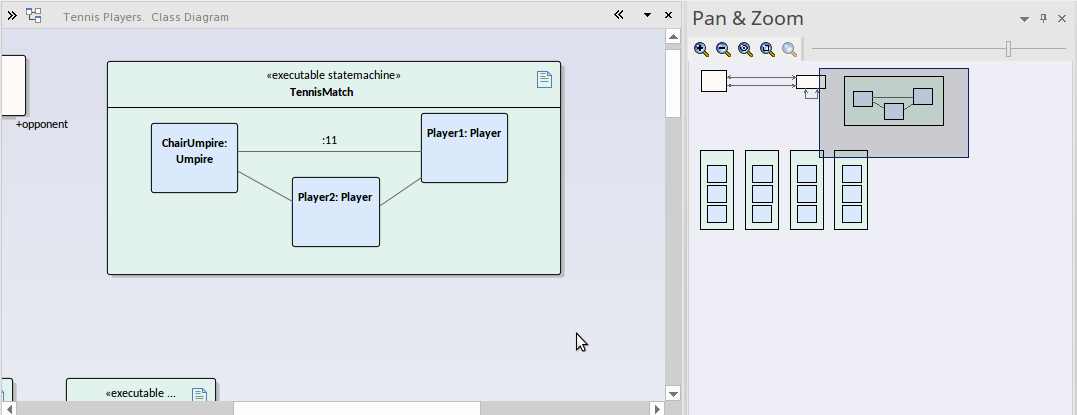 The Pan & Zoom window provides a 'birds-eye' view of diagrams. It enables you to navigate quickly around large diagrams.