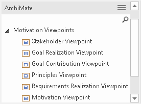 Figure: Showing the viewpoints in the Motivation group that relate elements such as Stakeholders and Drivers.
