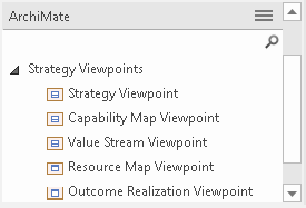 Figure: Showing the viewpoints in the Strategy group containing elements such as Capabilities and Resources.