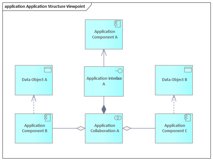The application structure viewpoint shows the structure of one or more applications or components. This viewpoint is useful in designing or understanding the main structure of applications or components and the associated data; for example, breaking down the structure of the system under construction, or identifying legacy application components that are suitable for migration/integration.