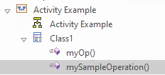 Operations from Classes can be represented by CallOperation Action elements on any diagram (such as an Activity, Custom or Analysis diagram). When an operation is shown as an Action, the notation of the element displays the name of the operation prefixed by the name of the Class from which it comes.