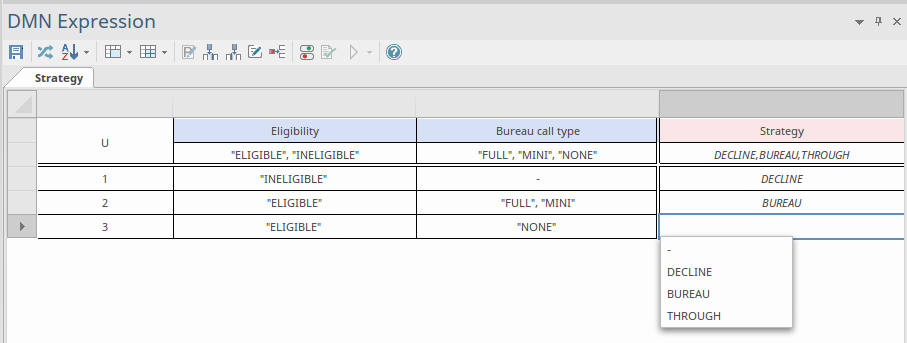 We can quickly fill the 'Allowed Values' field for a Decision Table by selection: