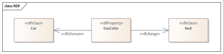 For example, one way to represent the notion "The car has the color red" in RDF is as the triple: a subject denoting "the car," a predicate denoting "has the color", and an object denoting "red."