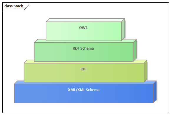 The Web Ontology Language OWL provides a way of representing knowledge and describing taxonomies and classification graphs. The nouns (vertices) represent classes of objects, and the verbs (edges) model the relationships or connections between the objects. The OWL language is the upper-most element in a stack and is based on the W3C's schema definition language Resource Description Framework Schema (RDFS) which specializes the basic metadata markup language Resource Description Framework (RDF).