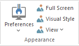 The 'Appearance panel helps you to define the look and feel of Enterprise Architect, setting preferences that change the style of the interface to suit the work role you are performing. There is a wide range of preferences you can set to tailor the way the application behaves under your login, including setting colors, fonts and diagram styles. You can also select options to display the interface in full-screen mode and in one of several visual styles, and you can temporarily hide or display selected sections of the interface.