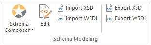 From the 'Schema Modeling' panel, you can access facilities generating and importing DB Schema and for importing and exporting XSD files and WSDL files from your model.