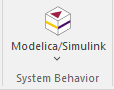The 'System Behavior' panel provides access to the Configure SysML Simulation view, where you can configure and manage SysML-based simulations as well as access a pre-defined search to retrieve SysML Configuration Artifacts.
