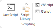 Click on this icon to display the Scripting window, through which you can add, edit and manage model-based scripts in JavaScript, JScript and VB.Net. |