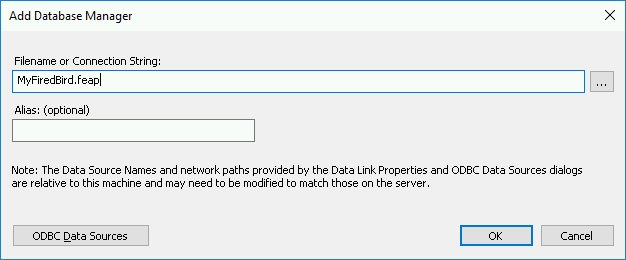 Once the existing file is placed in the 'Models' folder, simply enter the filename of the database in the 'Add Database Manager' screen and click on the OK button.  Your existing database will then be added to the list of defined Database Managers on the main Pro Cloud Server Configuration Client screen.