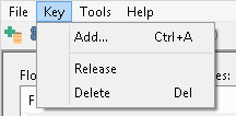 To delete a key from the selected Floating License Server /  Key Store, open the Floating License Configuration Client, click on the key in the 'Keys contained in this store' list, and then select the 'Key | Delete' header menu option.
