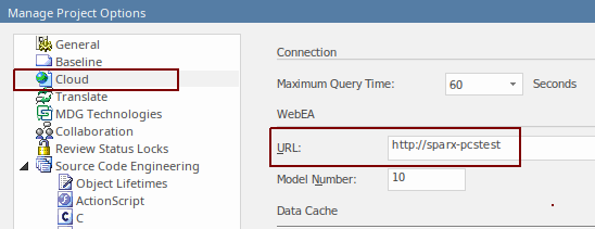 - Settings > Model > Options > Cloud > URL