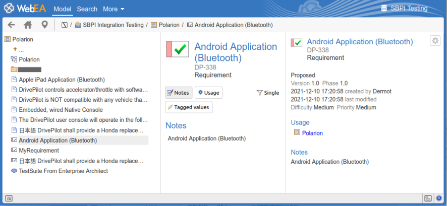 The elements created from external items can be referenced from the external application via a hyperlink back to the element details hosted on WebEA. The benefits of using WebEA as the reference include: