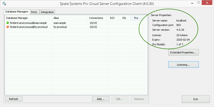 When the License screen is closed, the Main screen will now reflect the new License in the 'Server Properties' section: