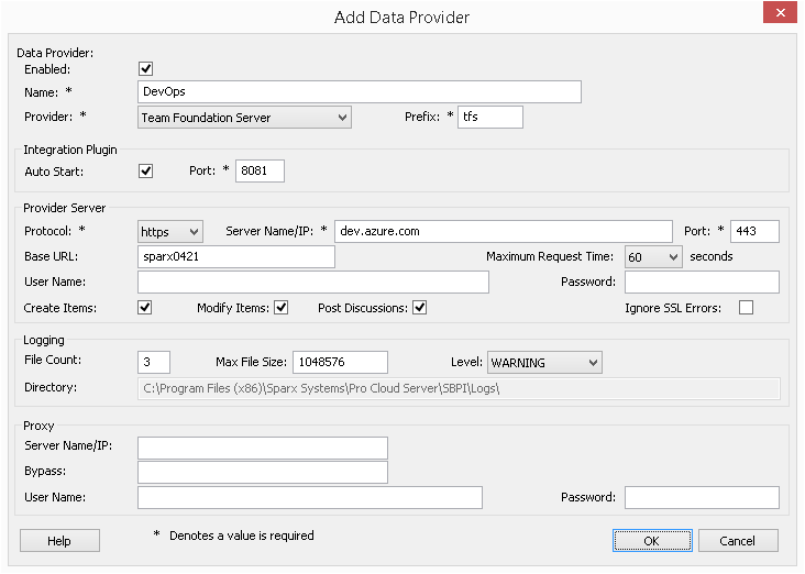 User Name: Leave this field empty. Users will be prompted for their user name when using the integration within Enterprise Architect.