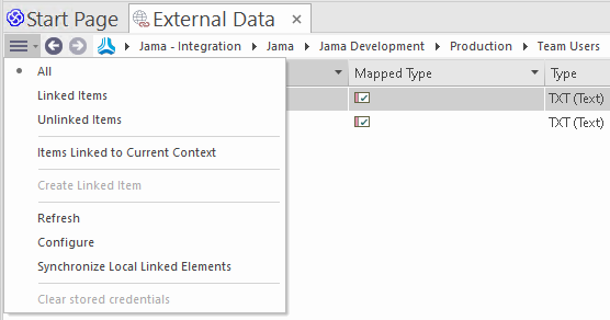 - 'Items Linked to Current Context' to show only the Jama items that are linked to the currently selected Enterprise Architect element
