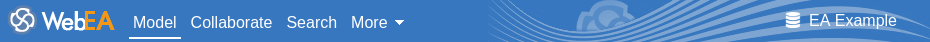 WebEA's heading area displays the application logo in the top left corner, followed by tabs for each of WebEA's main views, 'Model', 'Collaboration' (if enabled), 'Search', and a 'More' dropdown menu. By default, the Model tab is selected.