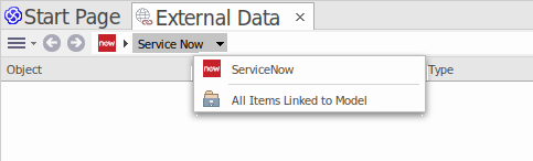 - 'Linked Items' to show only those ServiceNow items that are linked to Enterprise Architect elements