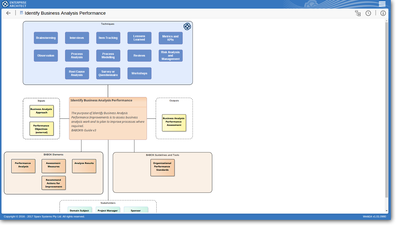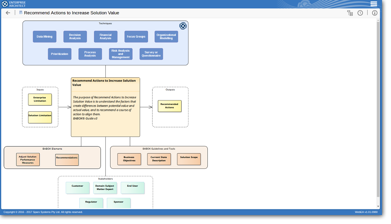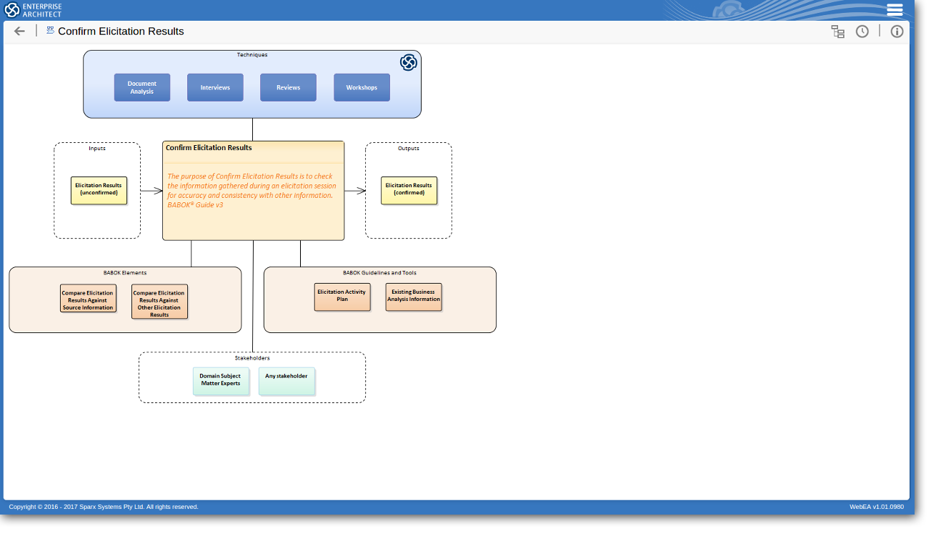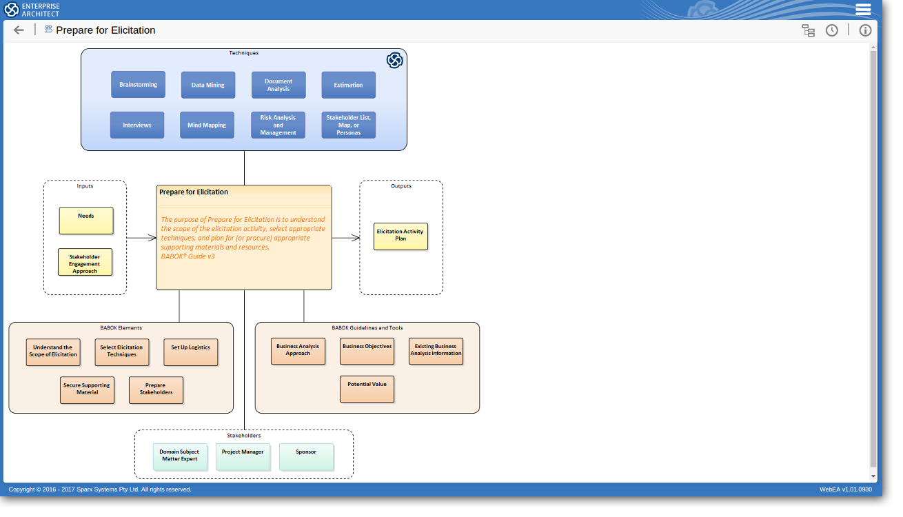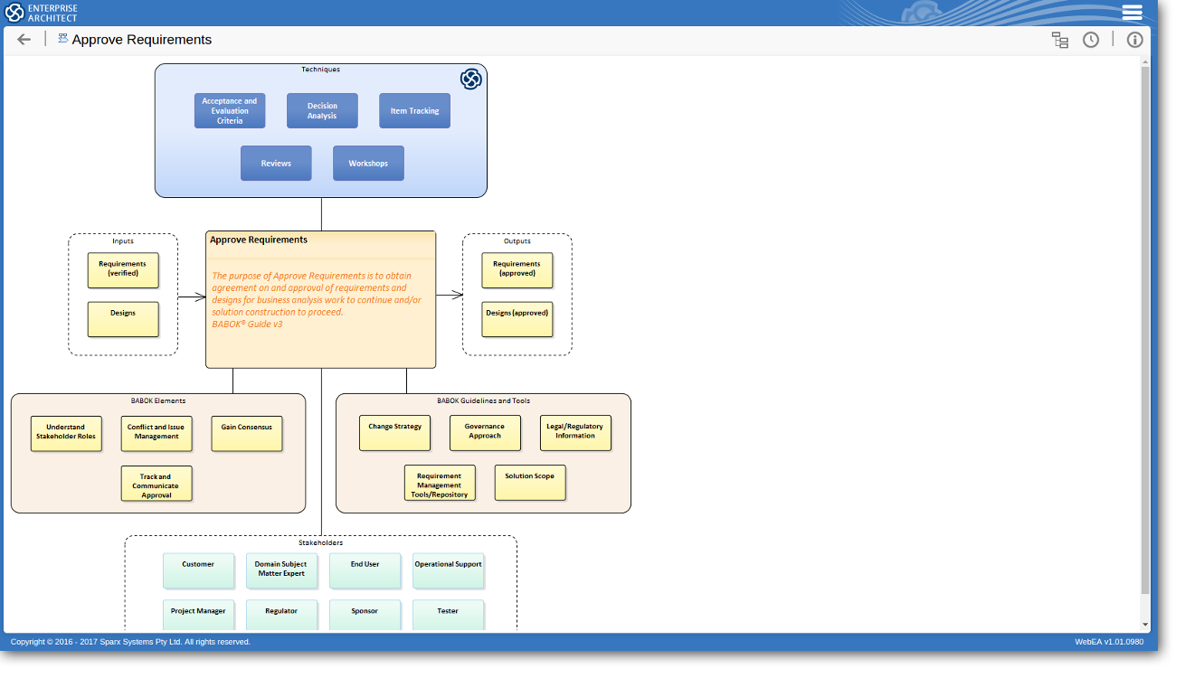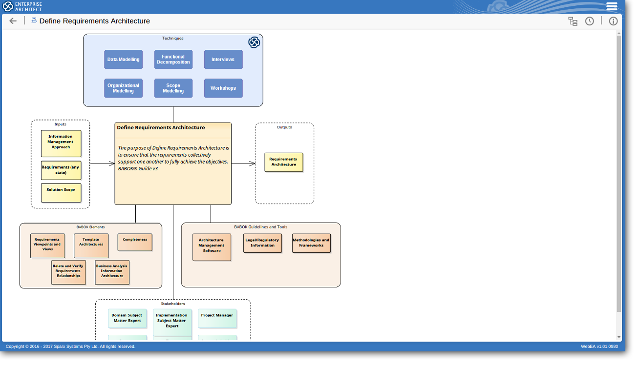 Access sample models that show you how BABOK Guide v3 concepts can be referenced using Enterprise Architect.