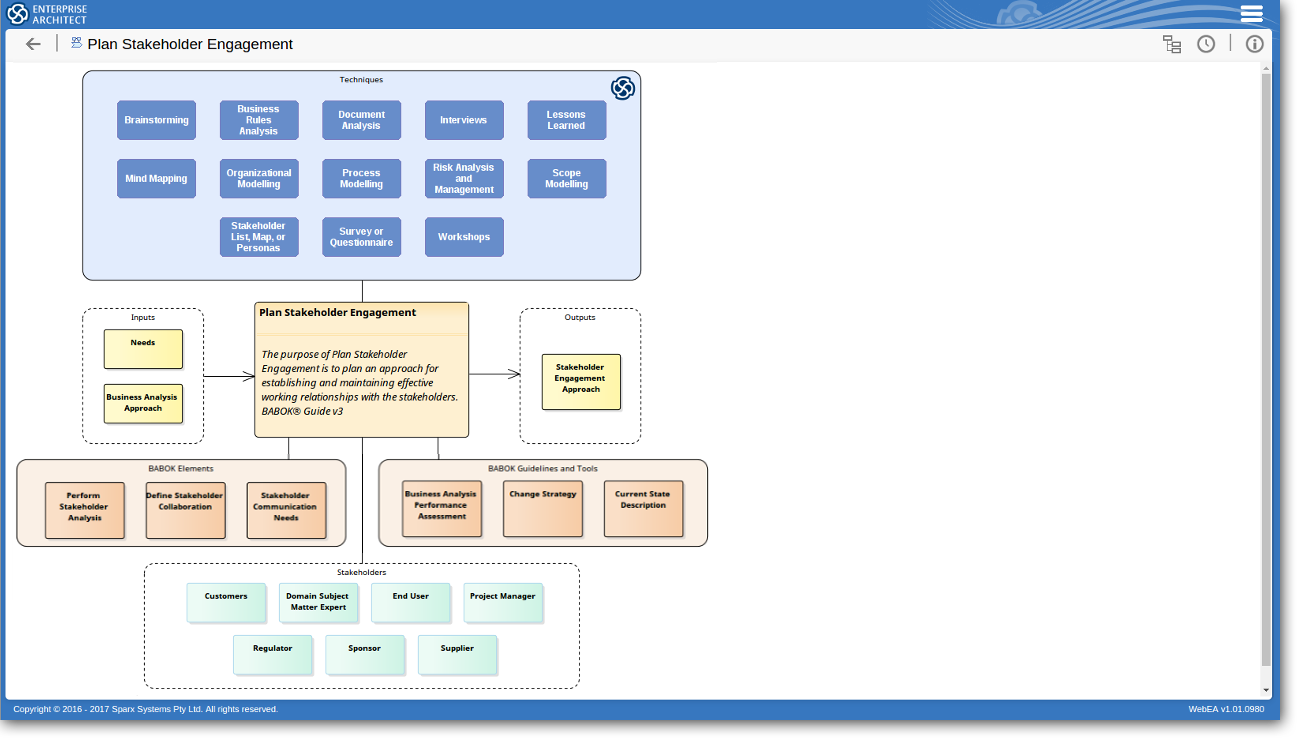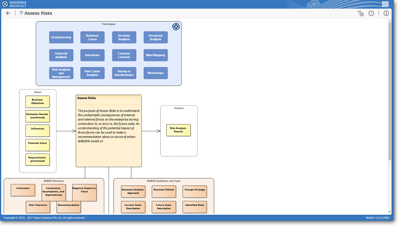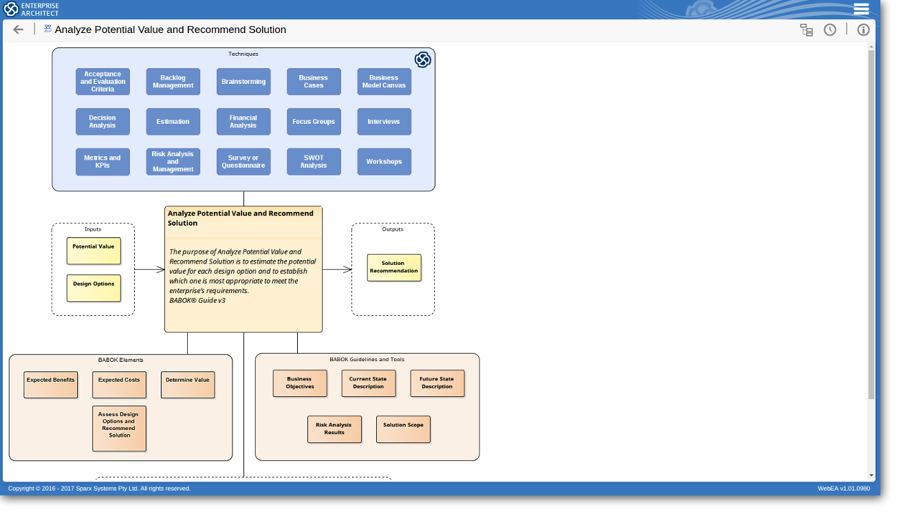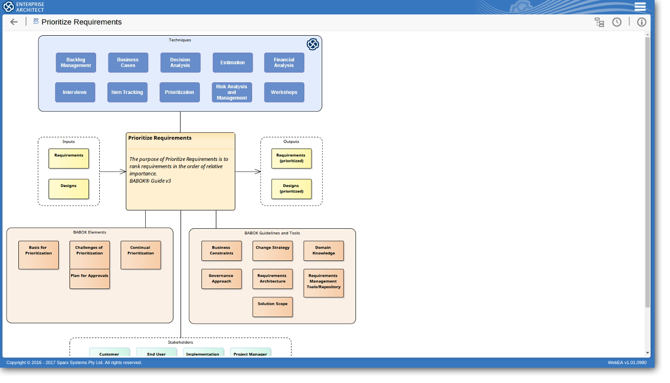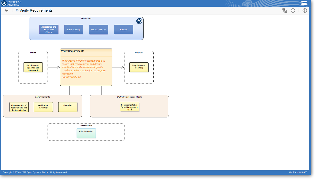 Access sample models that show you how BABOK Guide v3 concepts can be referenced using Enterprise Architect.