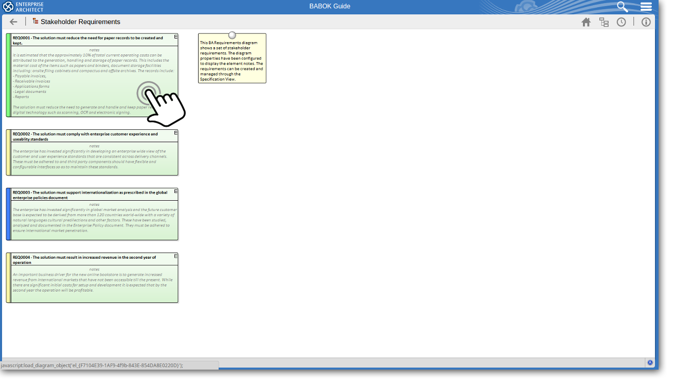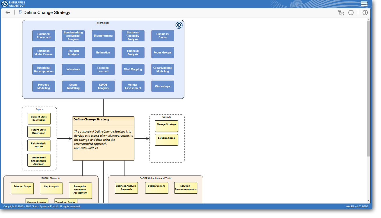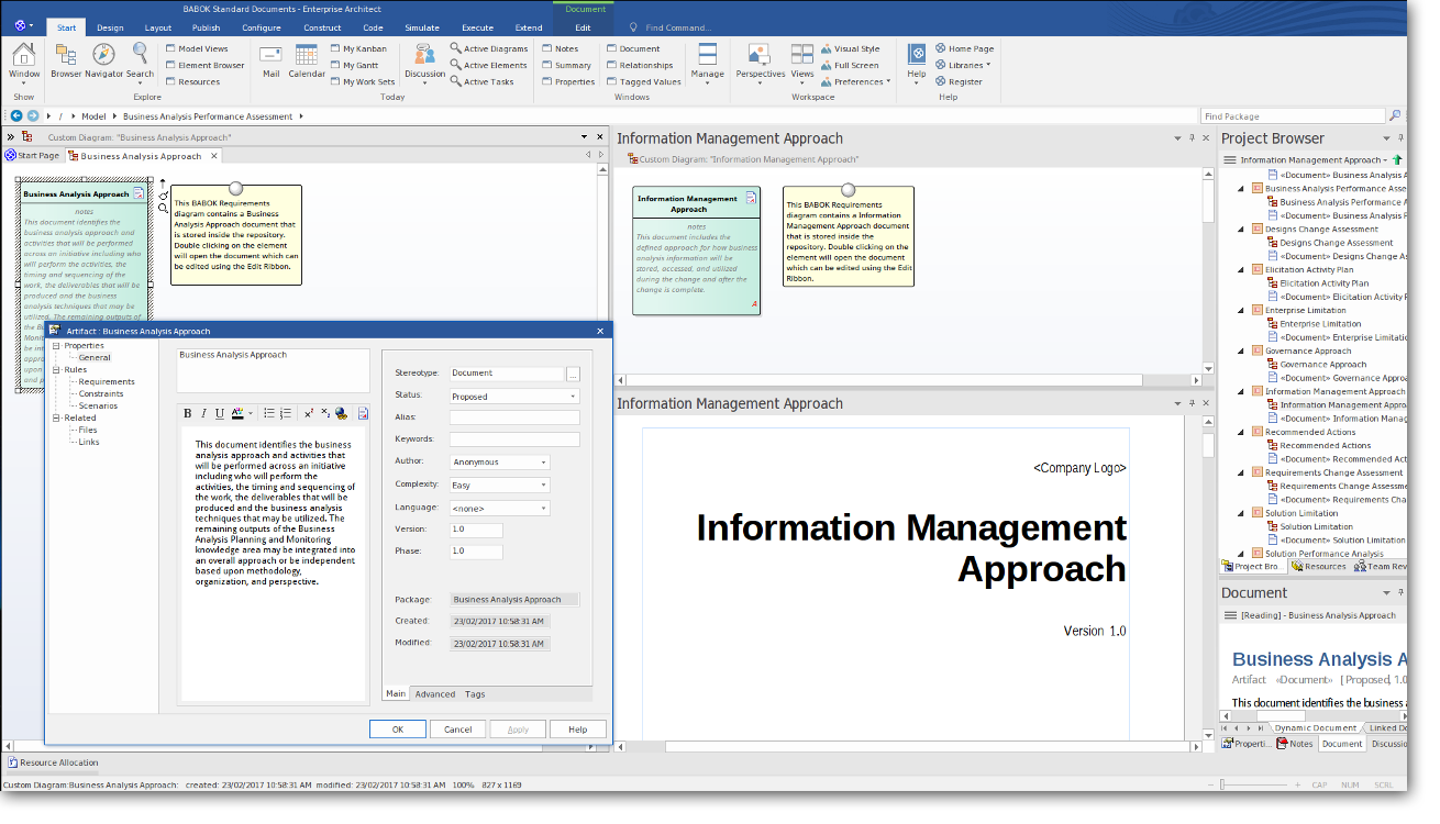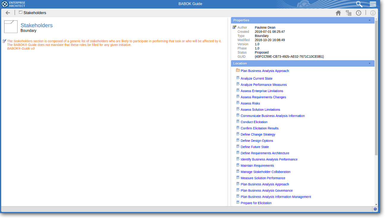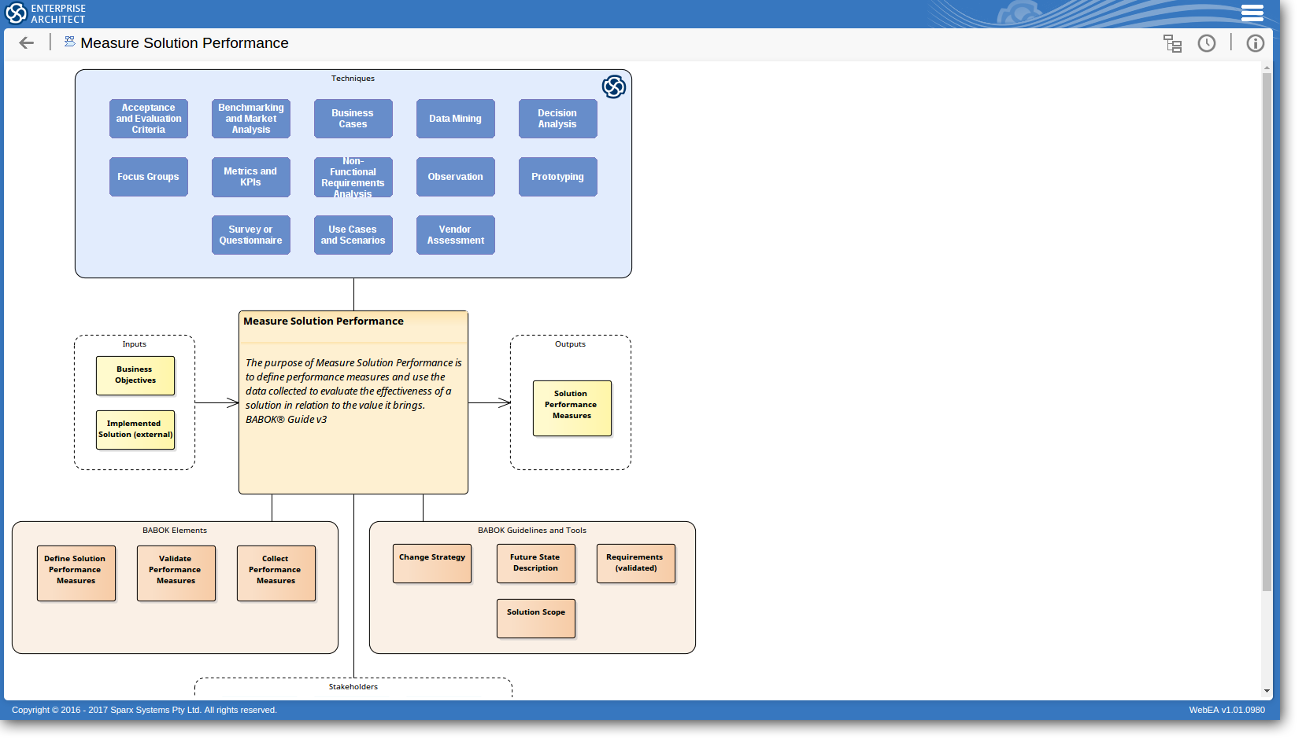 Access sample models that show you how BABOK Guide v3 concepts can be referenced using Enterprise Architect.