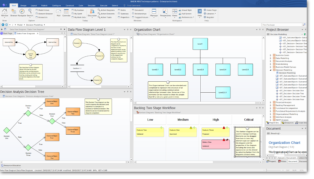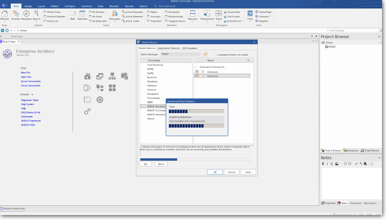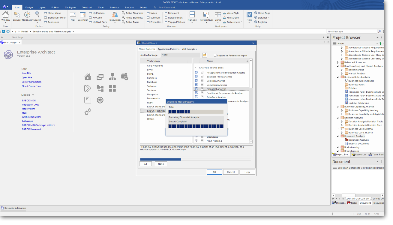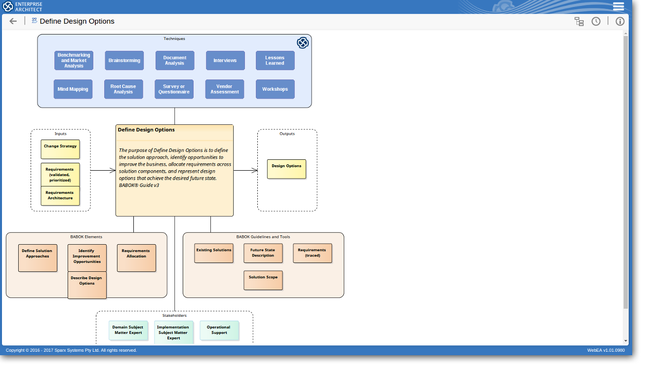 Using Enterprise Architect's powerful model wizard, model patterns for all BABOK Guide v3 options can be created: