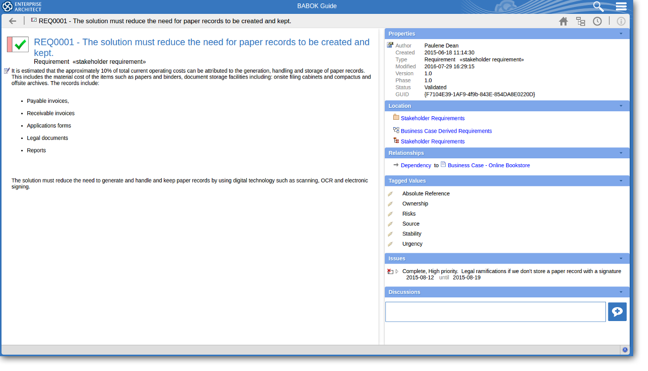 - Enterprise Architect & MDG Technology for BABOK Guide v3
