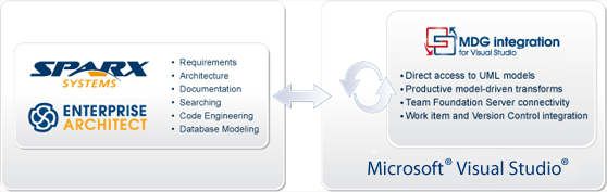 | Connect your Enterprise Architect models to C#, VB .Net, Visual C++ and J# projects in Visual Studio |