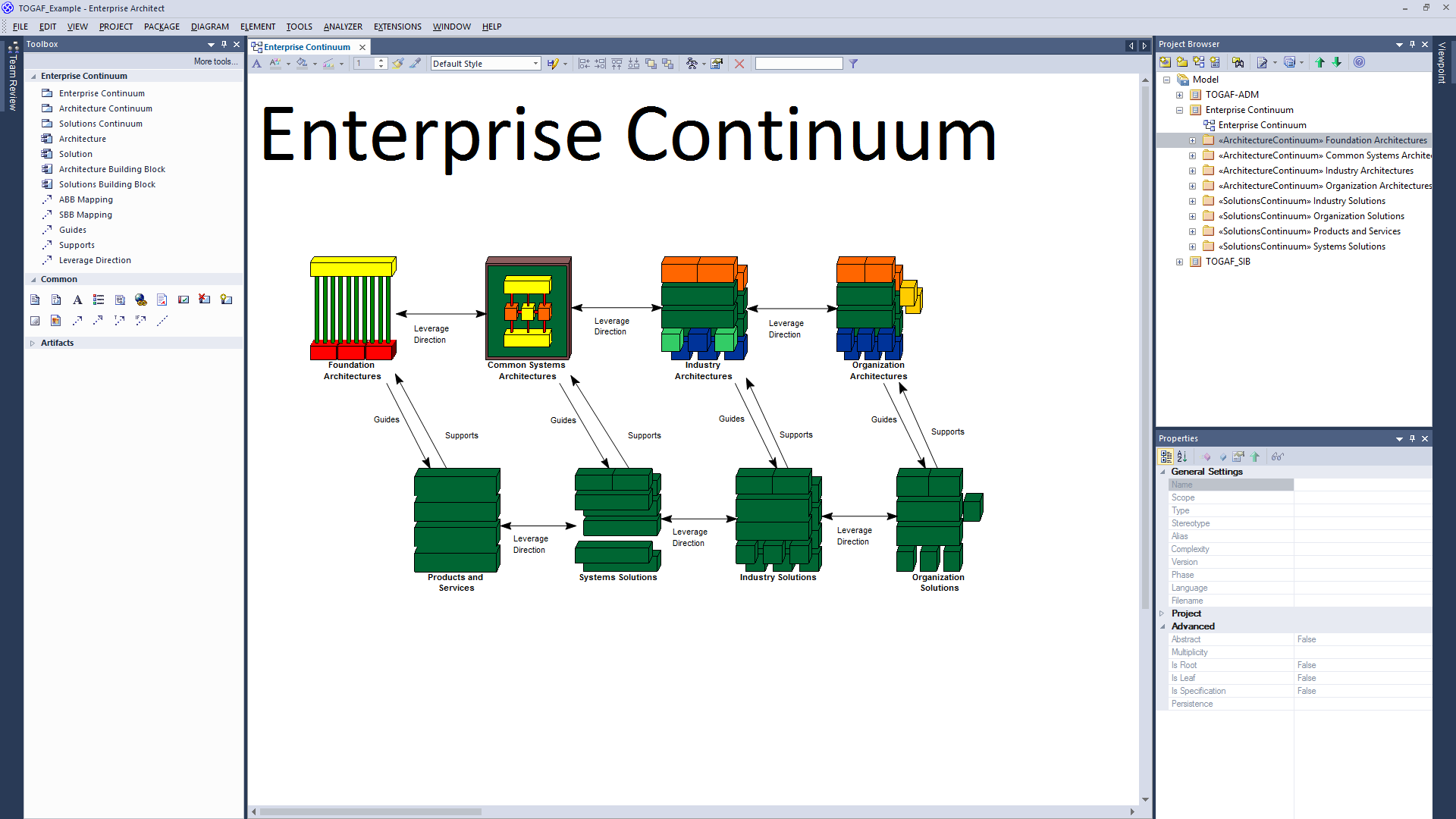 - Out-of-the-box TOGAF 9.1 Enterprise Continuum model
