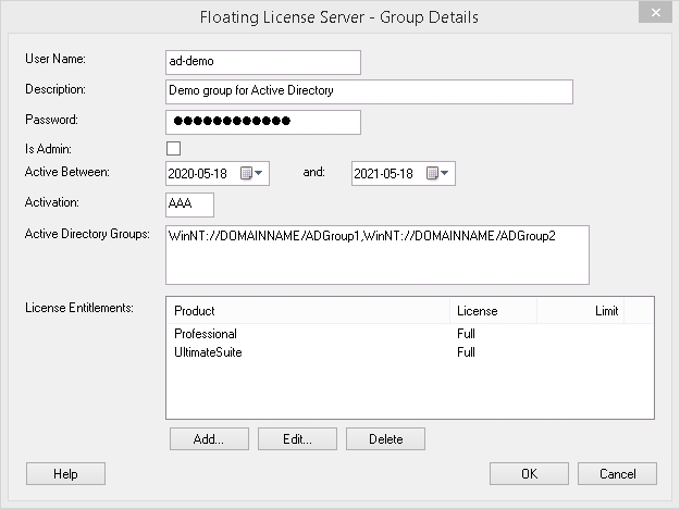 Customers utilizing Active Directory (AD) can now allocate one or more AD security groups to their Floating License Server groups, thereby allowing their user base instant access to the floating licenses implied by their AD groups, without needing to enter a user ID and password.