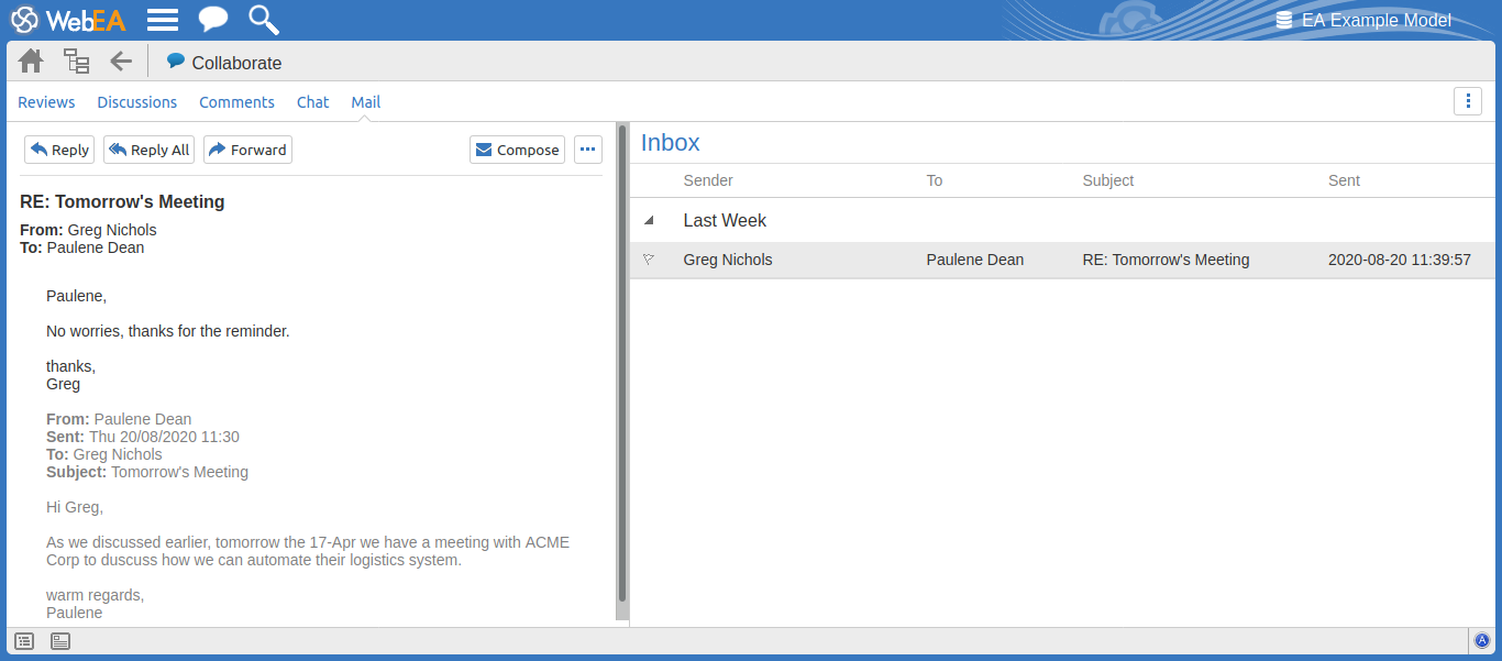 Collaboration - Discussions Collaboration - Mail Inbox Collaboration - Reply to Mail