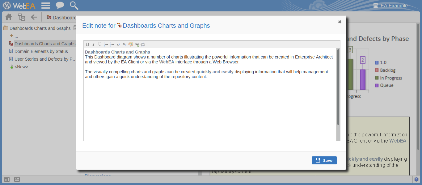 WebEA's Properties View now has a number of configuration options allowing you to display only the information needed. Discussions and Notes editing can also now be accessed directly from the Properties View.