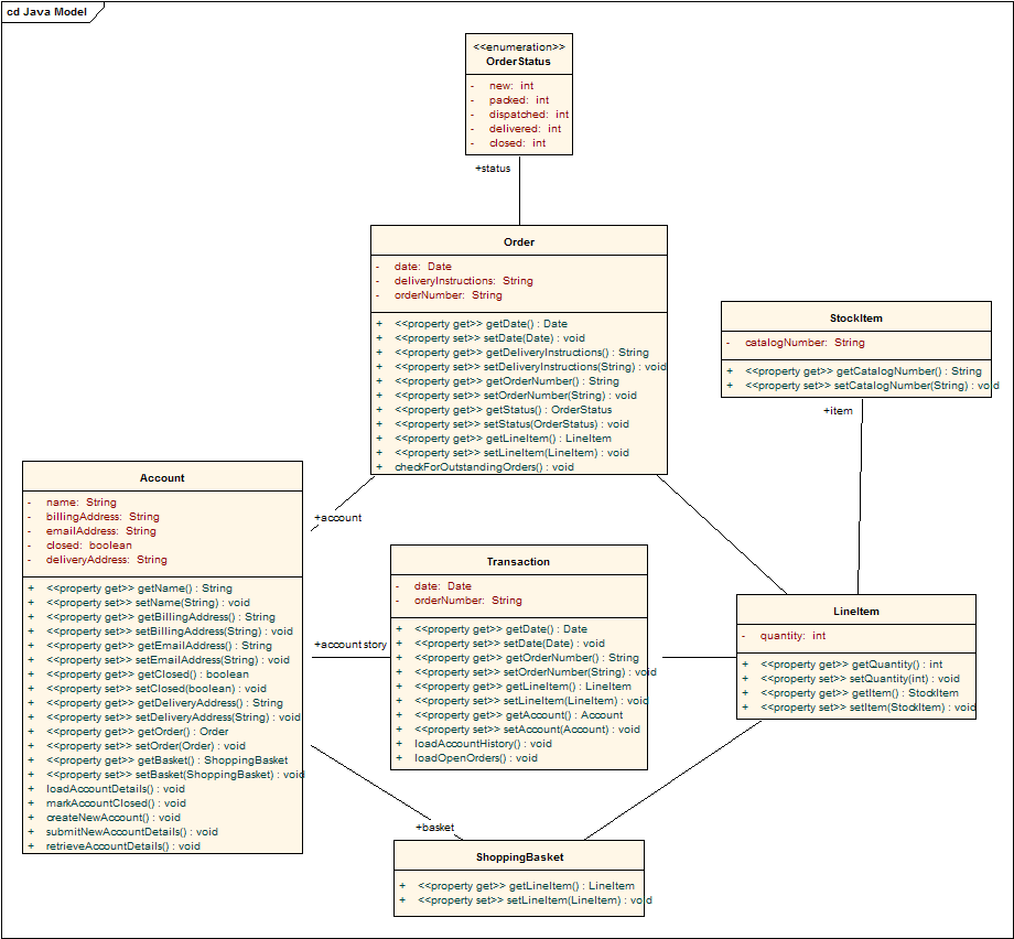 The purpose of the Java Transformation is to convert Platform-Independent Model (PIM) elements to language-specific Java class elements. The transformation converts the PIM model types to Java types and creates encapsulation according to EA's options for creating properties from Java attributes, i.e. producing the getters and setters according to the rules as they have been defined by the user.