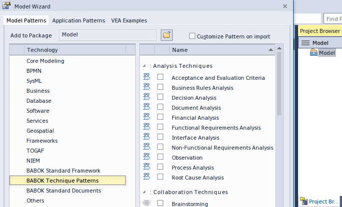 Tools and Techniques for BABOK Guide v3 provides hundreds of examples and best practice guidelines for Business Analysts to read and understand. Please review the website and find the techniques that you find applicable to your development project. You can create your own model using the convenient Model Wizard and the MDG Technology for BABOK. This model can be tailored and adapted to suit your individual needs, helping you to save time and get started sooner.