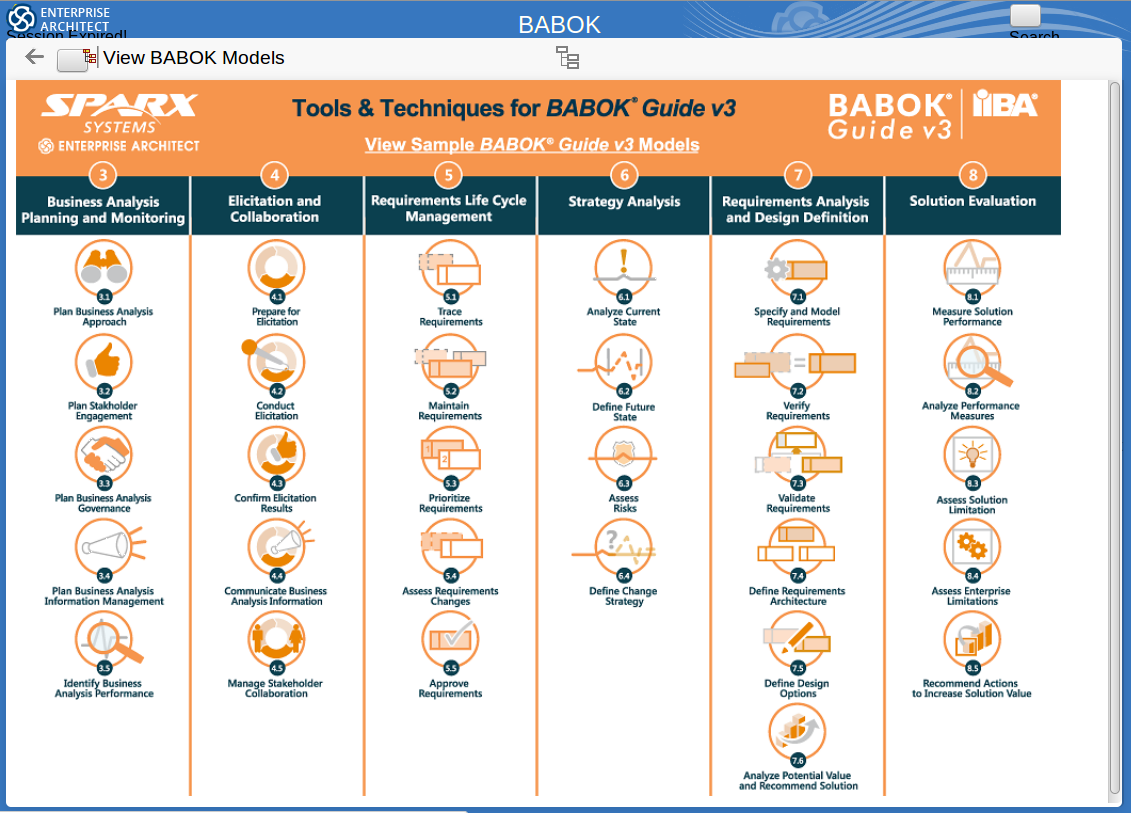Enterprise Architect is a powerful productivity tool that can help each and every Business Analyst to become more efficient and productive in their day to day role. This tutorial will demonstrate how to access and utilize the Tools and Techniques for BABOK Guide v3, teaching you how to implement best practice BA guidelines using suggested techniques, links to on-line help instructions and showcasing practical examples built in Enterprise Architect.