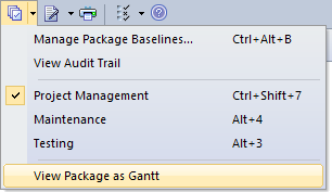 To switch to the Gantt View, you can use the Specification Management menu to view the package as Gantt – See Figure 1.